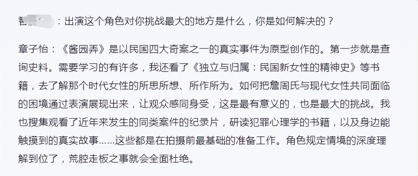 言外之意,章子怡从剧本到表演,都有自己的想法和坚持,她不是那种听导演话、按照导演要求完成既定表演的人。