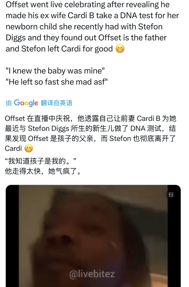 Offset直接开直播疯狂庆祝:早就知道孩子是我的!他和Cardi结束了!