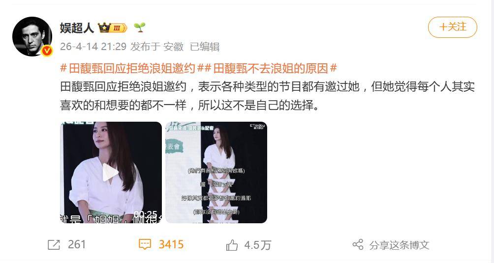 消息传出后,粉丝反应两极。有人表示支持,认为“做自己喜歡的事最重要”、“专注音乐的她很酷”;也有人感到惋惜,期待能在综艺舞台上看到歌手身份之外的她。但无论如何,田馥甄用一句“不想踏”给出了属于自己的明确答案——在纷繁的娱乐圈选项里,她早已清楚自己的选择是什么。