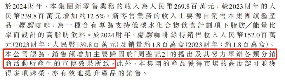 然而,光靠周董一个人的流量和资源,巨星传奇并不能只依靠这些活动赚钱,所以它开始逐步拓展业务领域,向自研消费类产品延伸,最具代表性的就是2019年推出的魔胴咖啡。