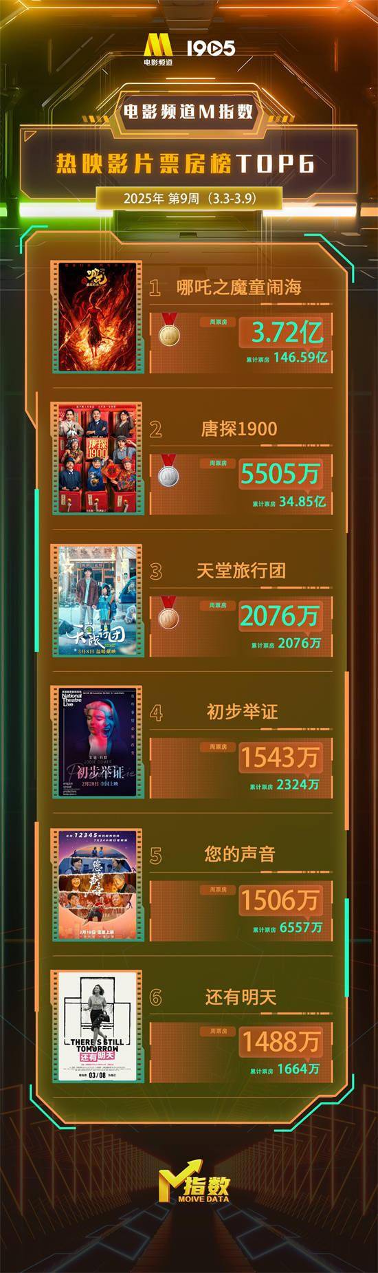 电影频道M指数2025年第9周(3.3-3.9)结果发布